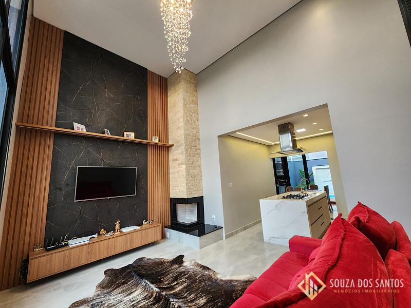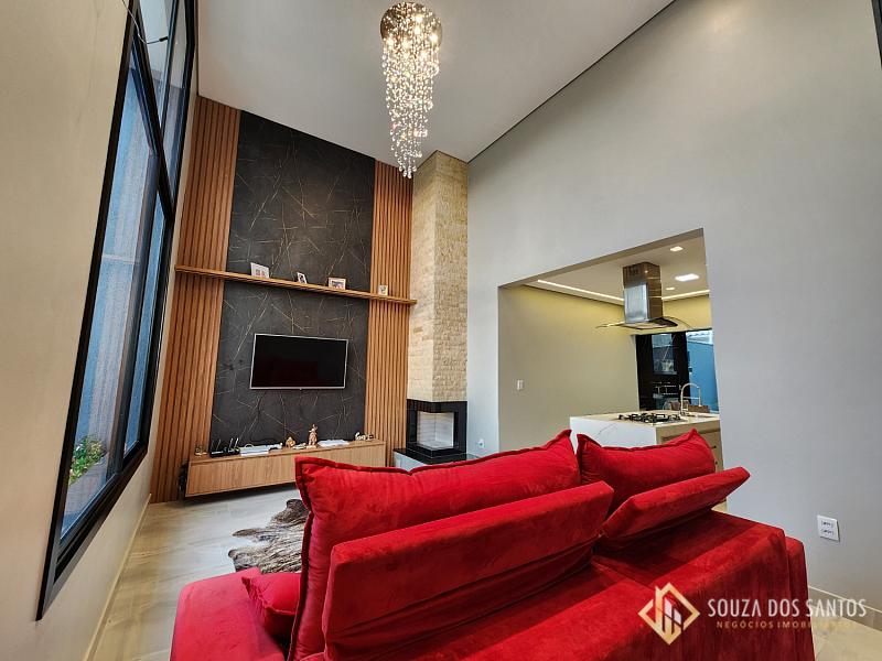Sala com pé direito alto toda casa em porcelanato