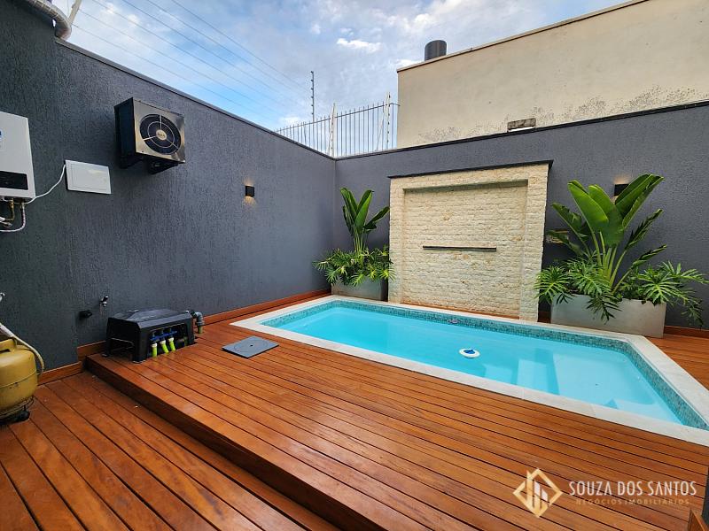Piscina com aquecedor Deck em grápia