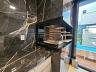 Área gourmet com ilha revestida em porcelanato
